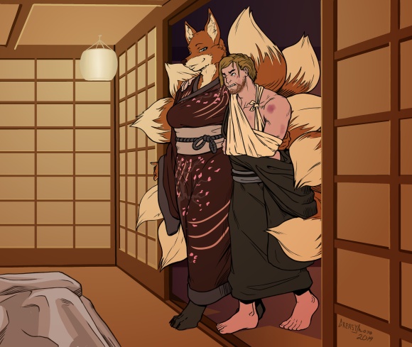 Kitsune Setting [1]: A wanderer, from a land far away, investigates rumors of a dangerous creature on a forest covered mountain in the land of the rising sun. He discovers more questions than answers once he meets the master of the mounta...